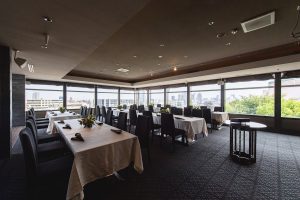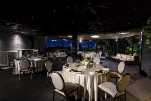 北野クラブのメインフロワーとなる室内からは、パノラマに広がる神戸の街並みと景色が眺める贅沢なロケーション